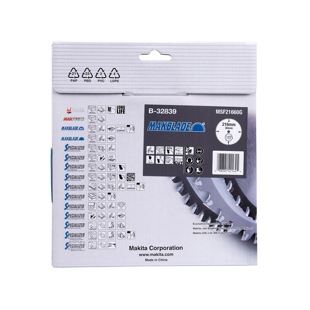 Makita Makblade körfűrészlap fához 216x30x2mm 60 fog