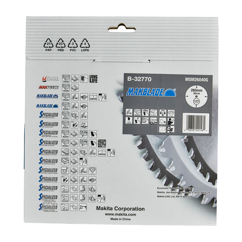 Makita Makblade körfűrészlap fához 260x30x2,3mm 40 fog
