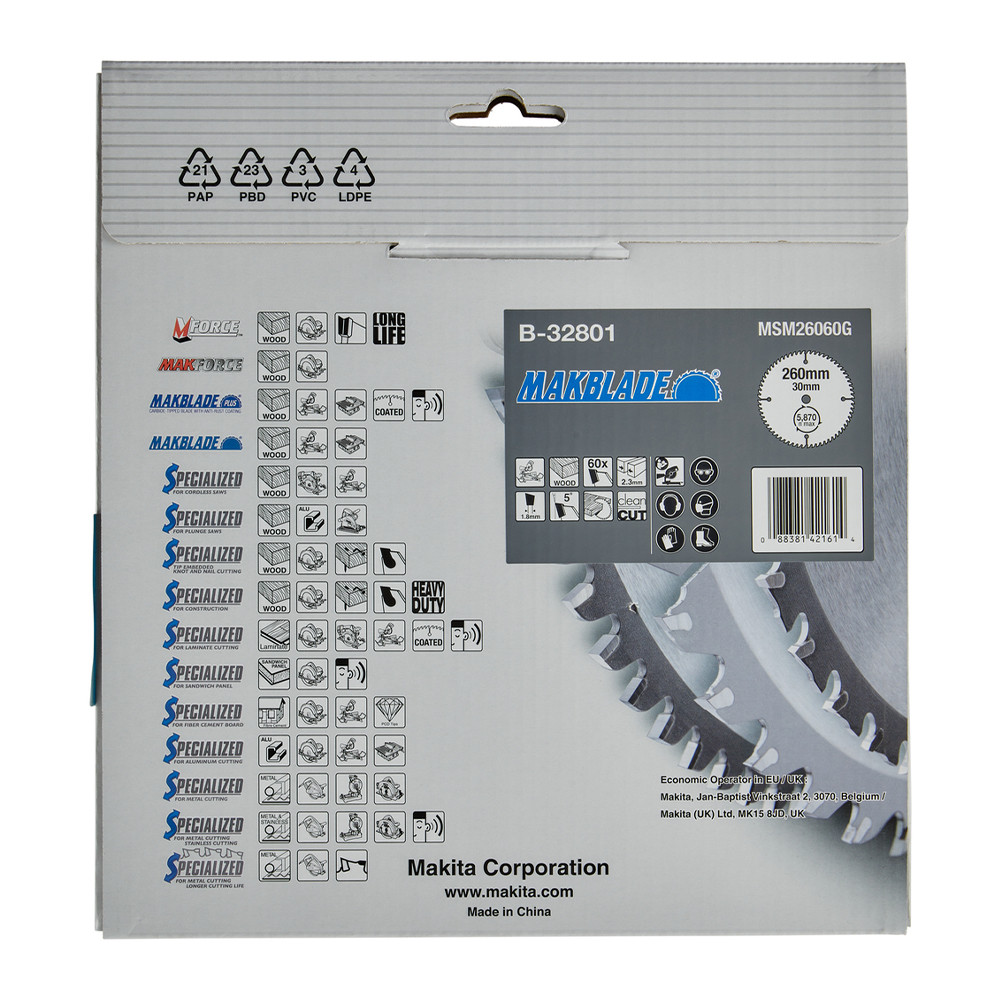 Makita Makblade körfűrészlap fához 260x30x2,3mm 60 fog