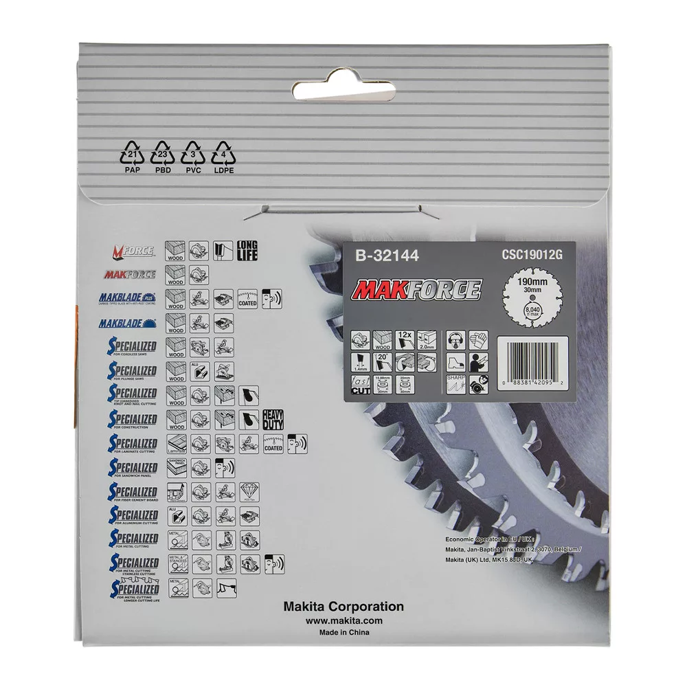 Makita Makforce körfűrészlap fához 190x30x2mm 12 fog
