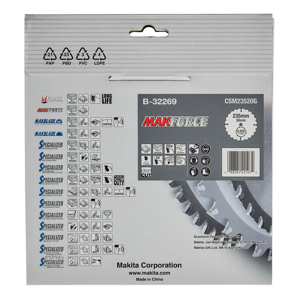 Makita Makforce körfűrészlap fához 235x30x2,3mm 20 fog