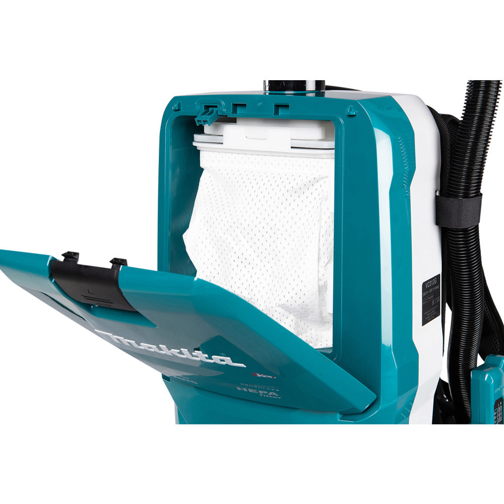 A Makita VC012GZ01 egy 40Vmax XGT Li-Ion akkumulátoros,szénkefementes hátizsákos porszívó, amelyet kifejezetten nagy teljesítményt igénylő és hatékony tisztításra terveztek