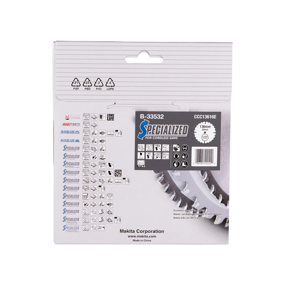 Makita körfűrészlap akkus géppel, fához 136x20x1,5mm 16 fog