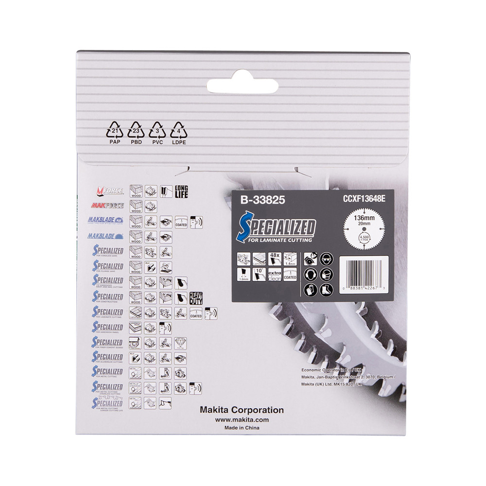 Makita körfűrészlap laminált laphoz akkus géppel 136x20x1,4mm 48 fog