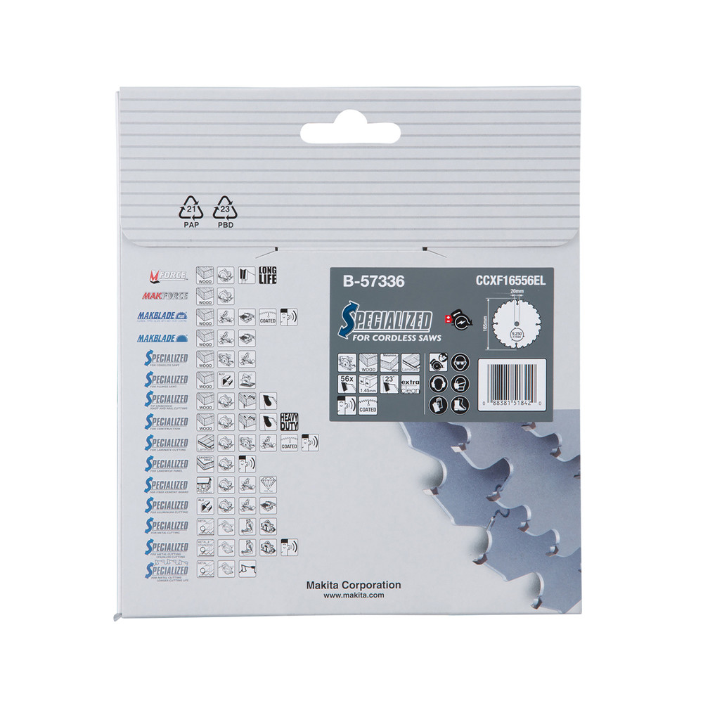 Makita merülő körfűrészlap MDF, laminált anyaghoz 165x20x1,45mm 56 fog