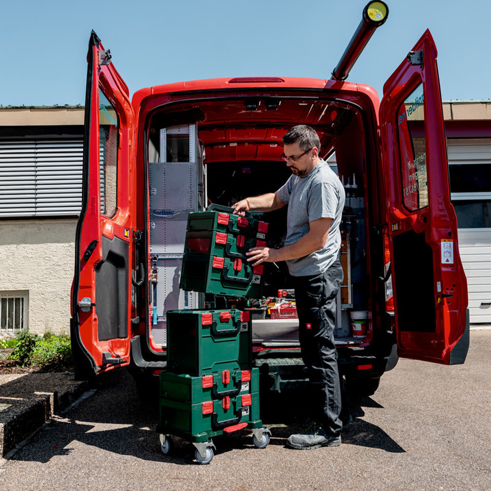 Okos tartozék: görgős deszka és a maximális mobilitás érdekében, és adapterlap a dobozok járműben való rögzítéséhez