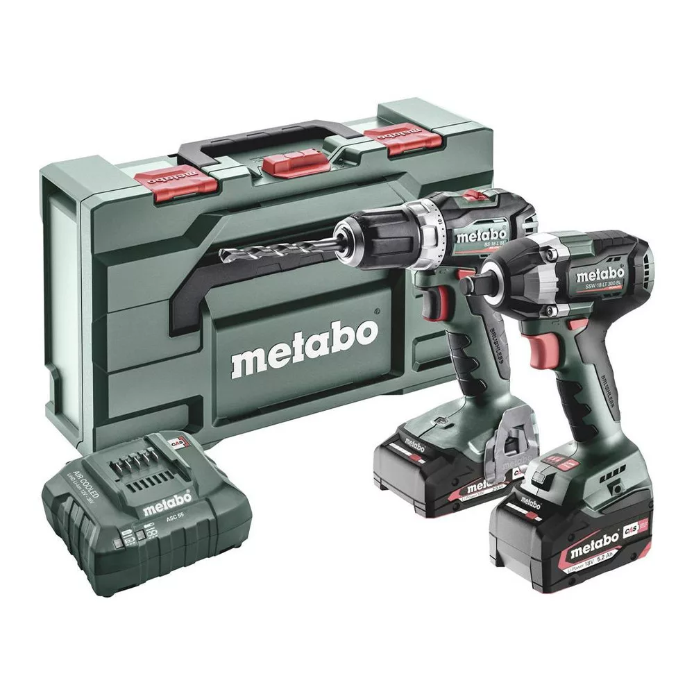Metabo akkus gépszett SSW 18 LT 300 BL 1/2" és BS 18 L BL 18V 1x2,0Ah és 1x5,2Ah Metabox koffer