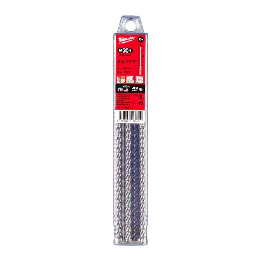 Milwaukee SDS-Plus 4 élű MX4 betonfúrószár 8x150/215mm (10db)