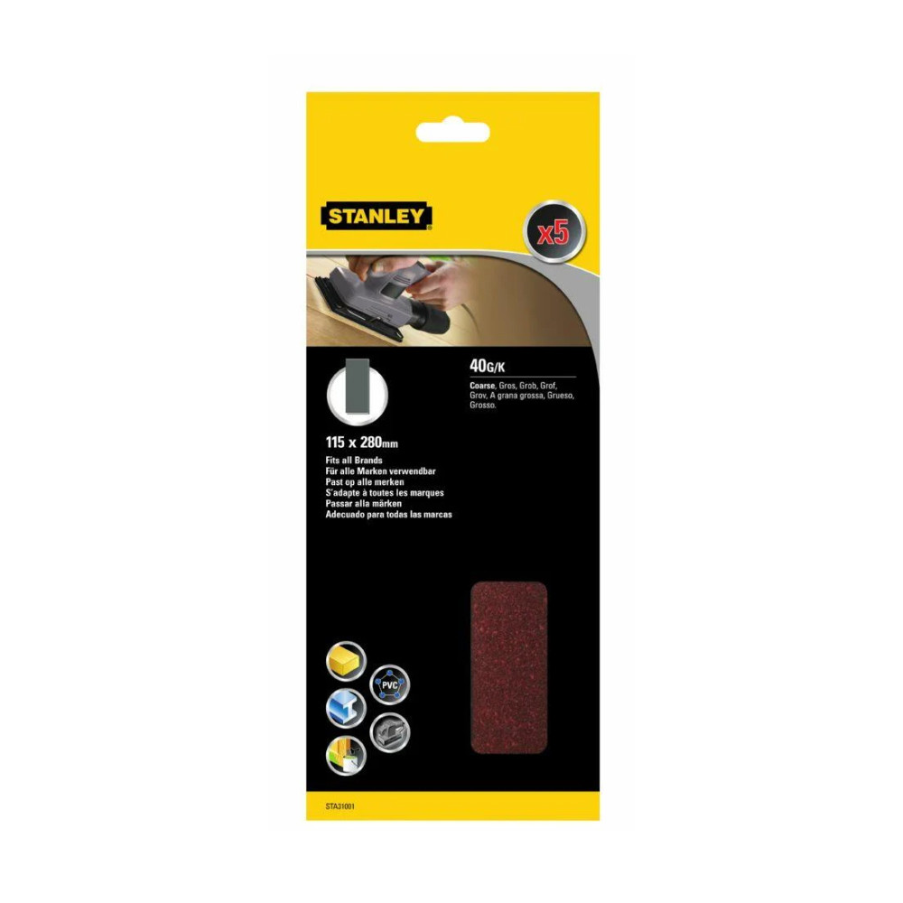 Stanley csiszolópapír rezgőcsiszolóra 115x280mm, P40, 5db/cs