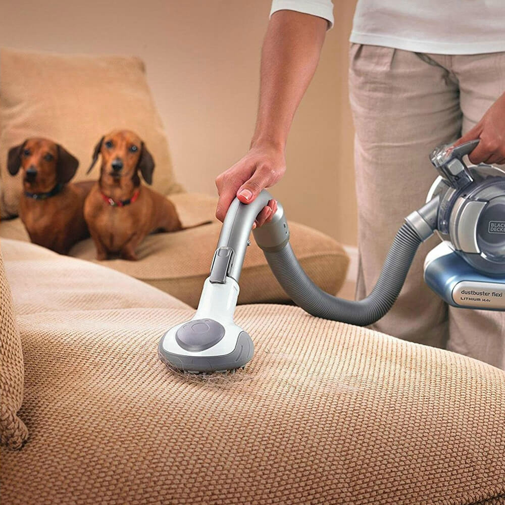 Nagy teljesítményű, akkumulátoros kézi porszívó, beépített 1,5 m flexibilis szívócsővel a nehezen elérhető helyek megtisztításához