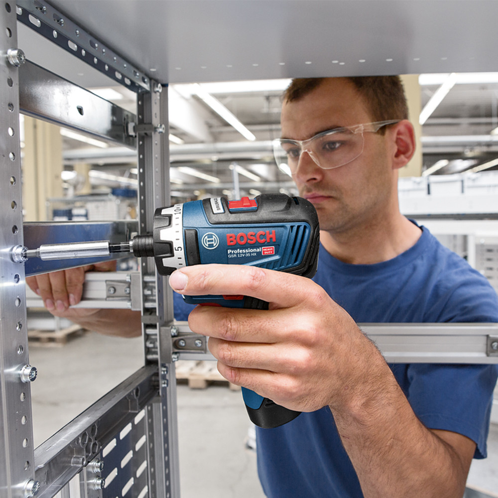 Bosch GSR 12V-35 HX akkus fúrócsavarozó alapgép2 db 3,0 Ah akkumulátorAkkumulátor töltőÖvcsipeszBittartóKartondoboz