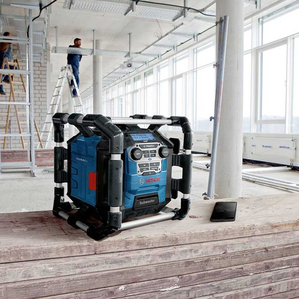 Zenelejátszás DAB+-on, Bluetooth-on, FM-en és AUX-on keresztül Intuitív kezelés és gyors beállítás Négy hangszóró, 20 W összteljesítménnyel, beépített mélynyomó (20 W) Kiváló tartósság: védőkeret, amelyet úgy terveztek, hogy ellenálljon a nehéz helyszíni körülményeknek