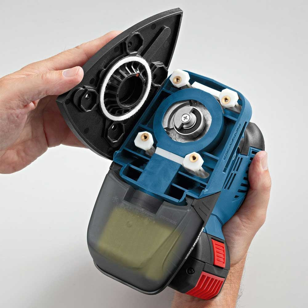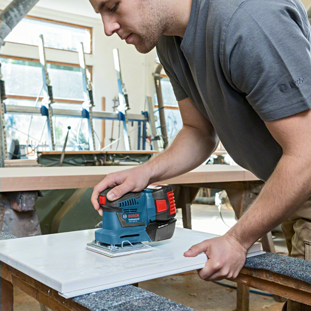 Bosch GSS akkus rezgőcsiszoló KartondobozLyukasztóeszközMikroszűrő dobozCsiszolópapír, K1201 x C470 csiszolólap, Best for Wood + Paint, 120Alaplemez, 113 x 101 mm, csiszolótalppalKartondoboz