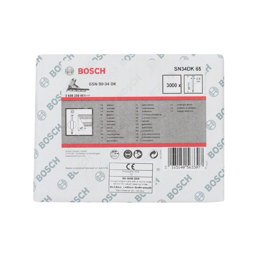 1 db Bosch D-fejű szalagszeg SN34DK 65, 3000 db
