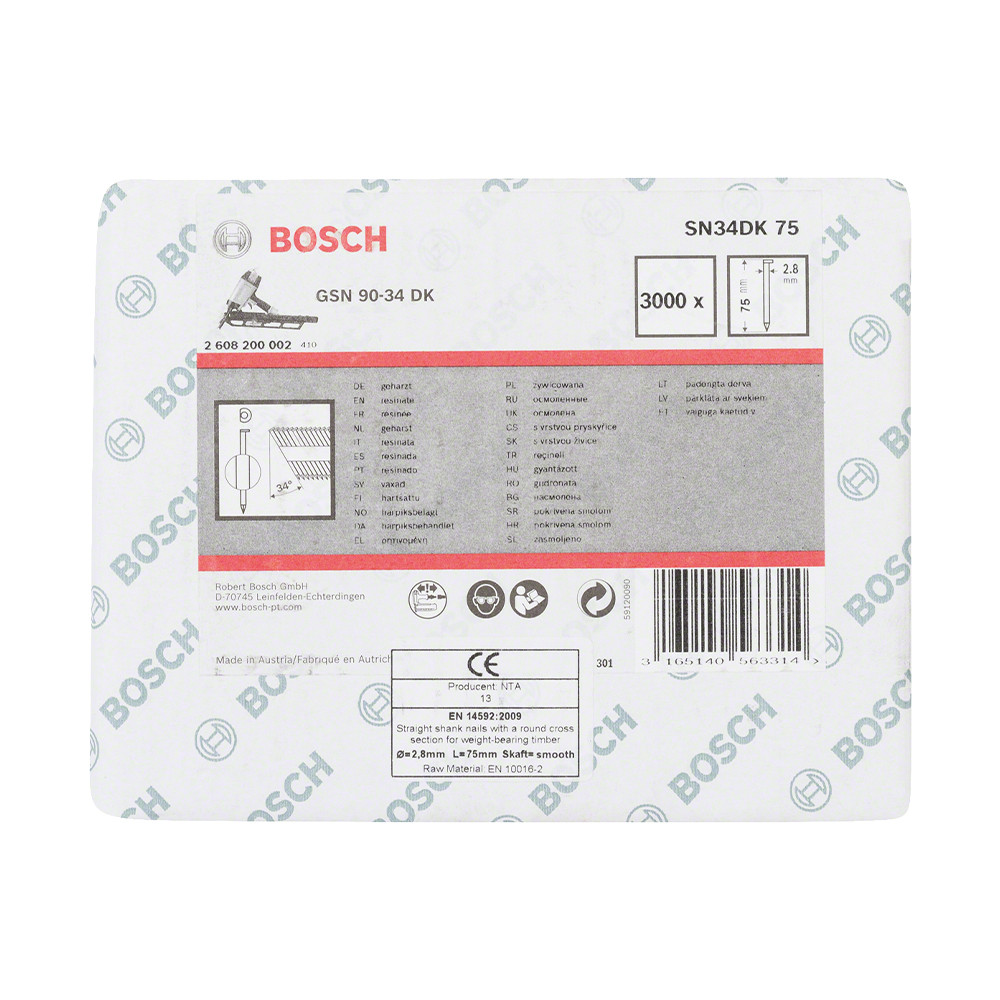 1 db Bosch D-fejű szalagszeg SN34DK 75, 3000 db