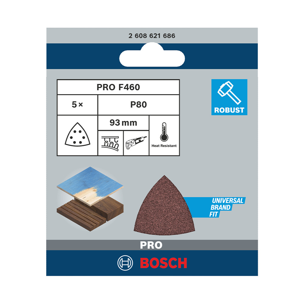 Bosch PRO F460 csiszolópapír, 93x93 mm, G80 5 db, fa, festékhez
