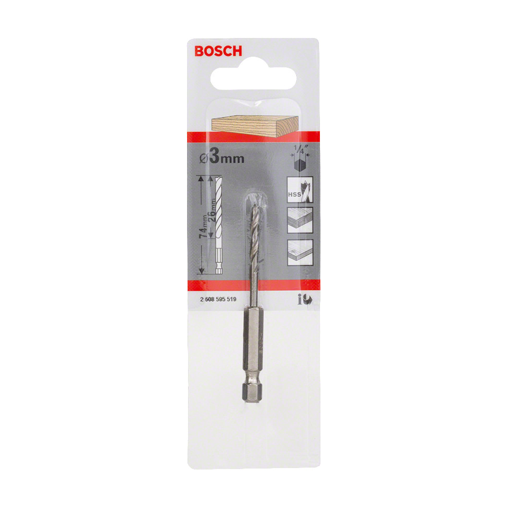 Bosch fa spirálfúrószár (csigafúró) hatszög befogással 3x33/74mm