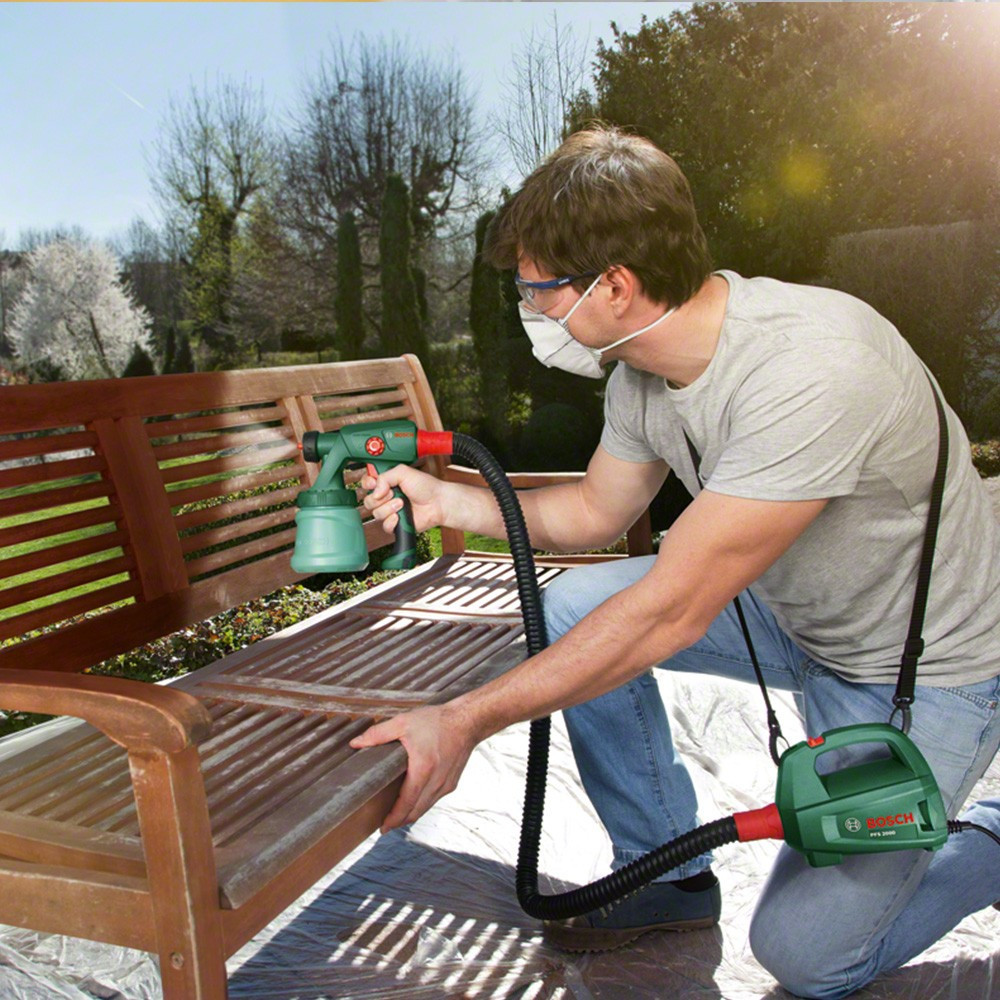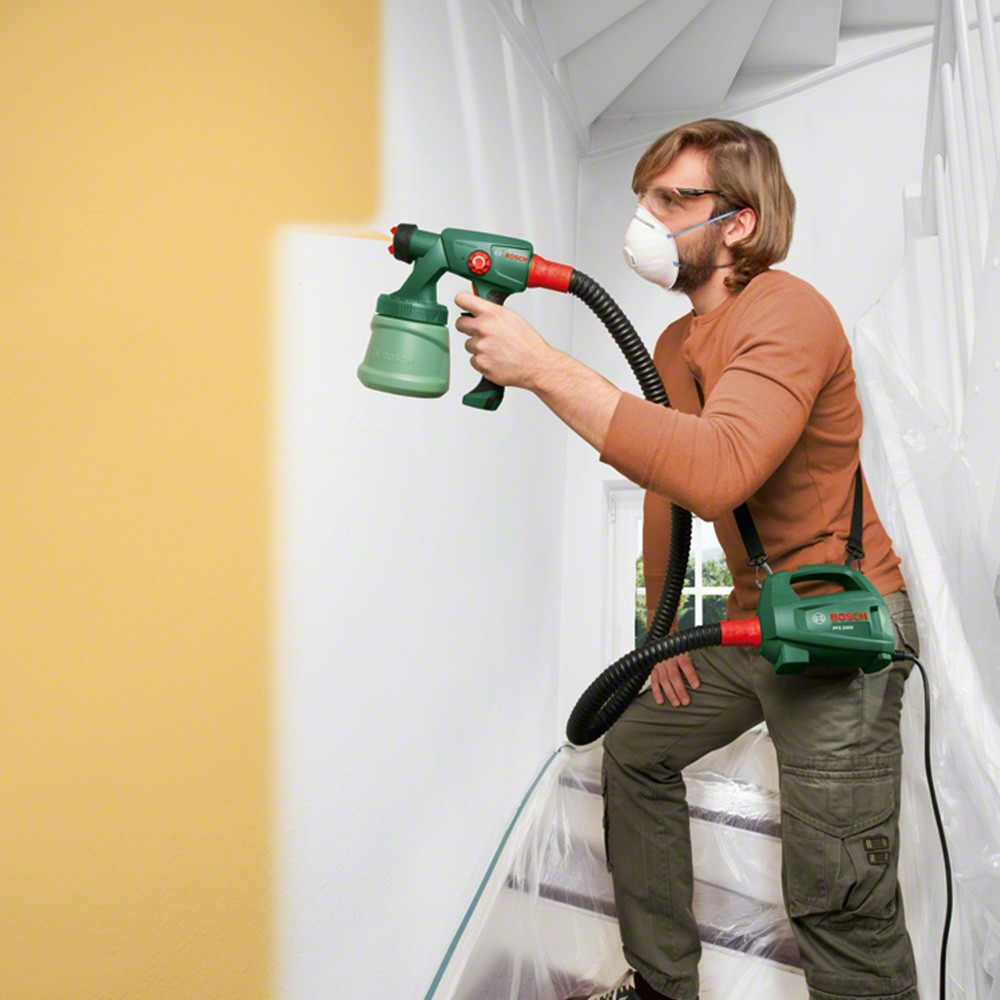 Bosch PFS 2000 festékszóróFúvóka lakkfestékhez és lazúrhoz (szürke)Fúvóka falfestékhez (fehér)TartóhevederTölcsér-festékszűrő kombináció800 ml-es tartály fedéllelKartondoboz