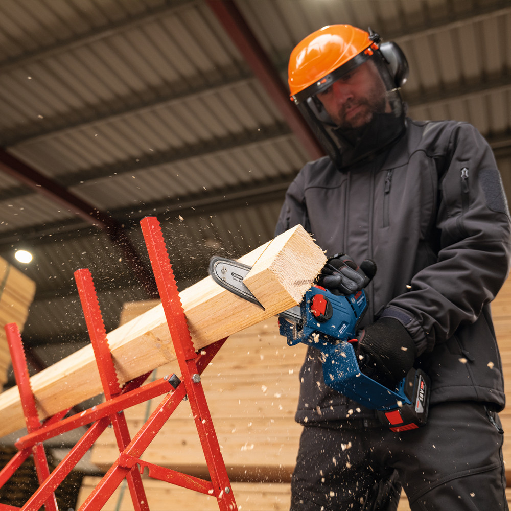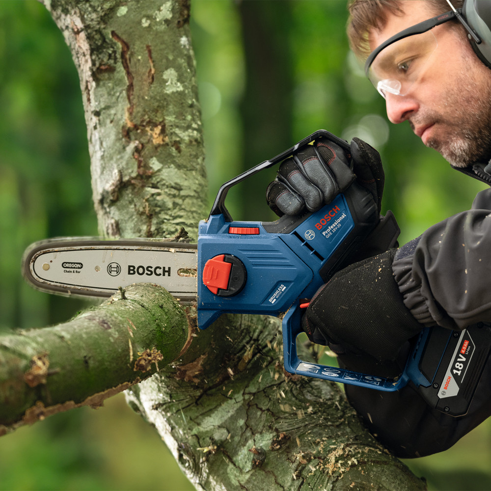 A Bosch GKE 18V-20 Professional ágvágó fűrész ideális vastagabb ágak metszéséhez, gallyazásához és akár 18 cm-es helyszíni vágásához