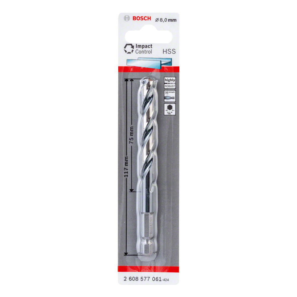Bosch PRO HSS Impact Control DIN 338 fémfúrószár 1/4" Bit befogással 8x75/117mm