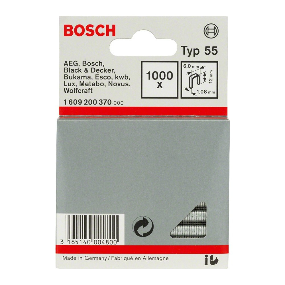 1000db Bosch keskenyhátú-tűzőkapocs Typ55 6x12
