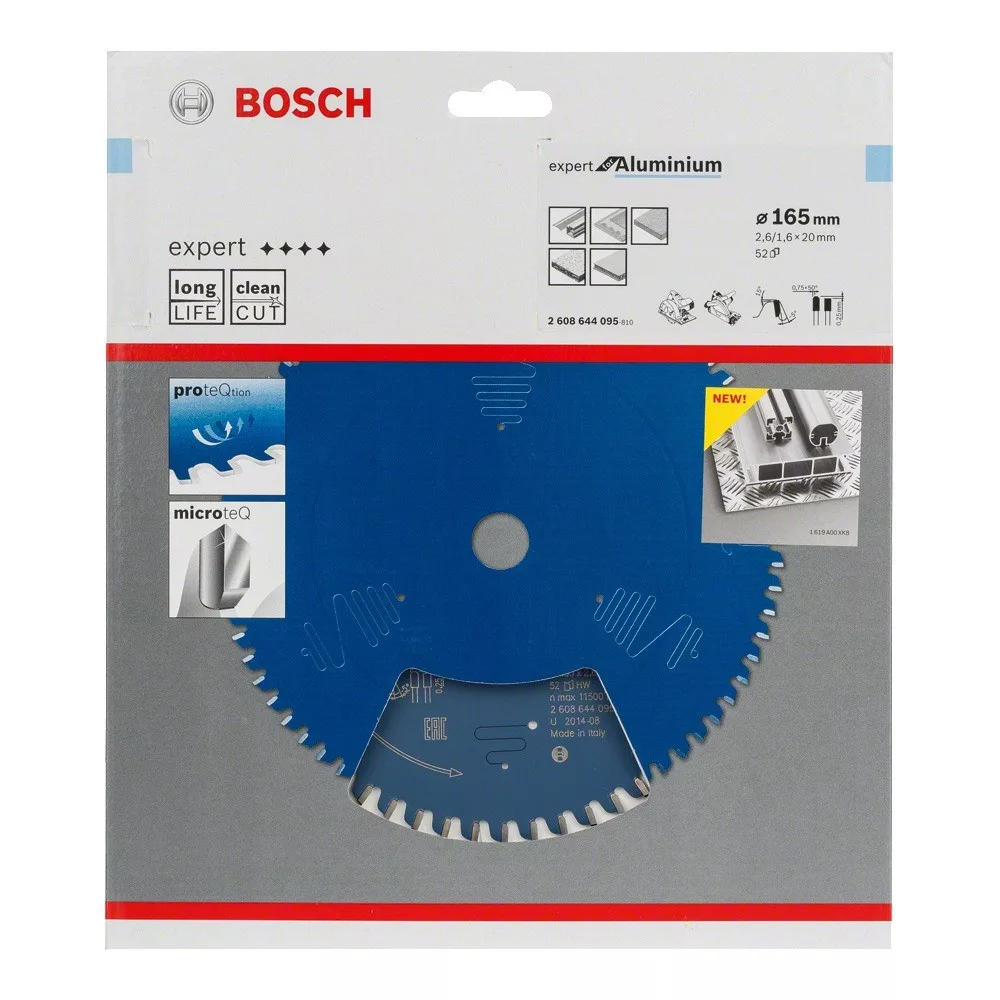 Alumínium tökéletes vágása - Az Expert for Aluminium körfűrészlap alumínium tökéletes vágására alkalmas. Egyedi Extra Hard Microteq fogazattal rendelkezik, amely a Bosch saját terméke, és nagyon finom keményfém szemcsékből készül, ami maximalizálja a fűrészlap élettartamát és teljesítményét. Ezt a teljesítményt támogatja a fűrészlap ProteQtion bevonata is, amely meggátolja a korróziót, és a súrlódás csökkentése mellett megbízható vágást nyújt. Továbbá a termék rezgéscsillapító bemetszései különösen sima vágást, jelentősen kisebb zajt és rezgést biztosítanak. A fűrészlap alumínium, nemvasfémek, műanyagok, epoxigyanta és fa vágására használható. Szúrófűrészgépekkel és kézi fűrészgépekkel használható. Az Expert for Aluminium körfűrészlap HLTCG (magas-alacsony háromszor forgácsoló köszörülésű) fogazata meglehetősen robusztus, így alumínium megmunkálásához használható. Szűkítőgyűrűkkel vagy szűkítőgyűrűk nélkül használható, hogy passzoljon a különböző méretekhez