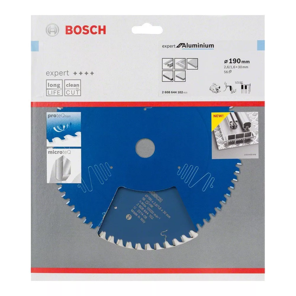 Alumínium tökéletes vágása - Az Expert for Aluminium körfűrészlap alumínium tökéletes vágására alkalmas. Egyedi Extra Hard Microteq fogazattal rendelkezik, amely a Bosch saját terméke, és nagyon finom keményfém szemcsékből készül, ami maximalizálja a fűrészlap élettartamát és teljesítményét. Ezt a teljesítményt támogatja a fűrészlap ProteQtion bevonata is, amely meggátolja a korróziót, és a súrlódás csökkentése mellett megbízható vágást nyújt. Továbbá a termék rezgéscsillapító bemetszései különösen sima vágást, jelentősen kisebb zajt és rezgést biztosítanak. A fűrészlap alumínium, nemvasfémek, műanyagok, epoxigyanta és fa vágására használható. Szúrófűrészgépekkel és kézi fűrészgépekkel használható. Az Expert for Aluminium körfűrészlap HLTCG (magas-alacsony háromszor forgácsoló köszörülésű) fogazata meglehetősen robusztus, így alumínium megmunkálásához használható. Szűkítőgyűrűkkel vagy szűkítőgyűrűk nélkül használható, hogy passzoljon a különböző méretekhez
