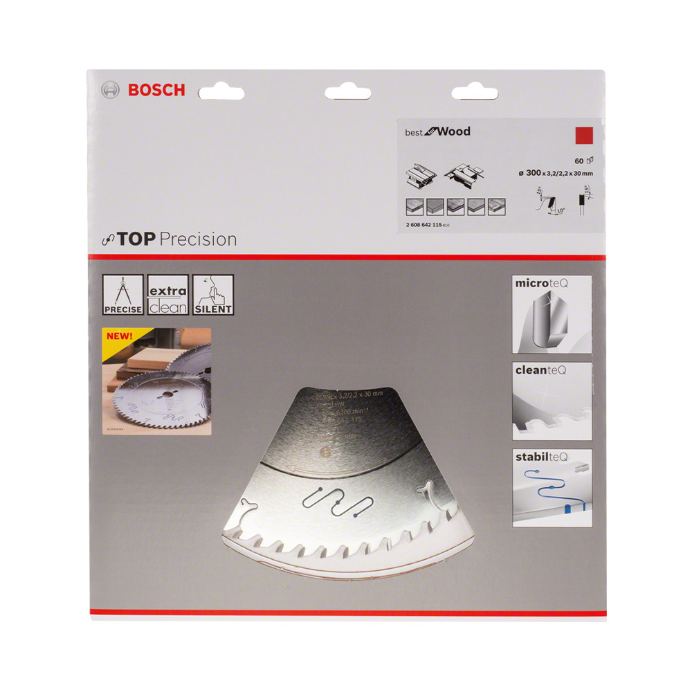 Egyedi extrakemény Microteq fogazata (Bosch saját terméke) tartós keményfém szemcsékből áll, és kiváló minőséget nyújt.