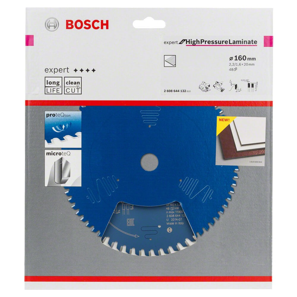 Bosch EXPERT körfűrészlap 160x2,2/1,6 20 T48 fog kézi fűrészekhez, laminált lap, rétegelt lemez