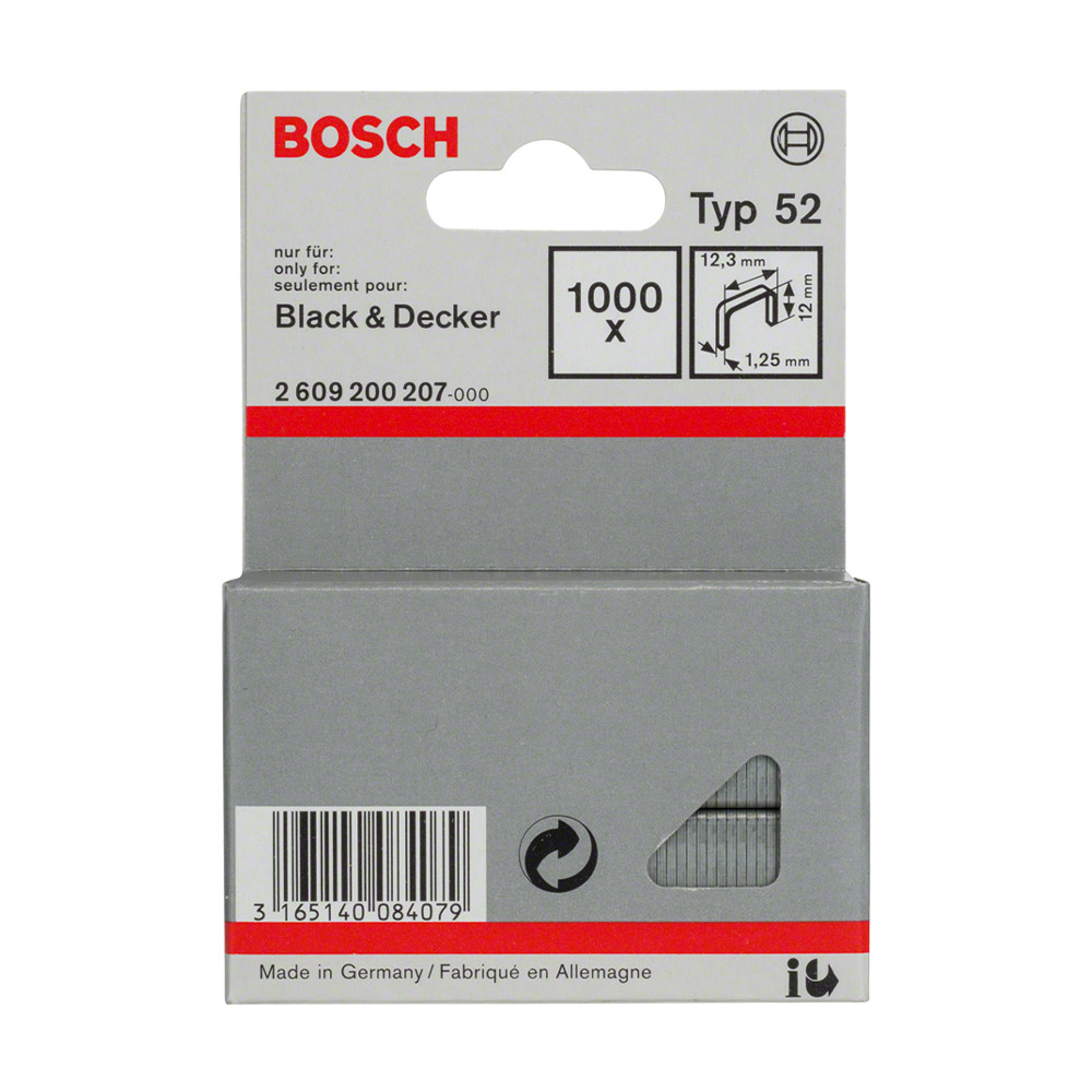 Bosch laposhuzal tűzőkapocs Type 52 12mm 1000db