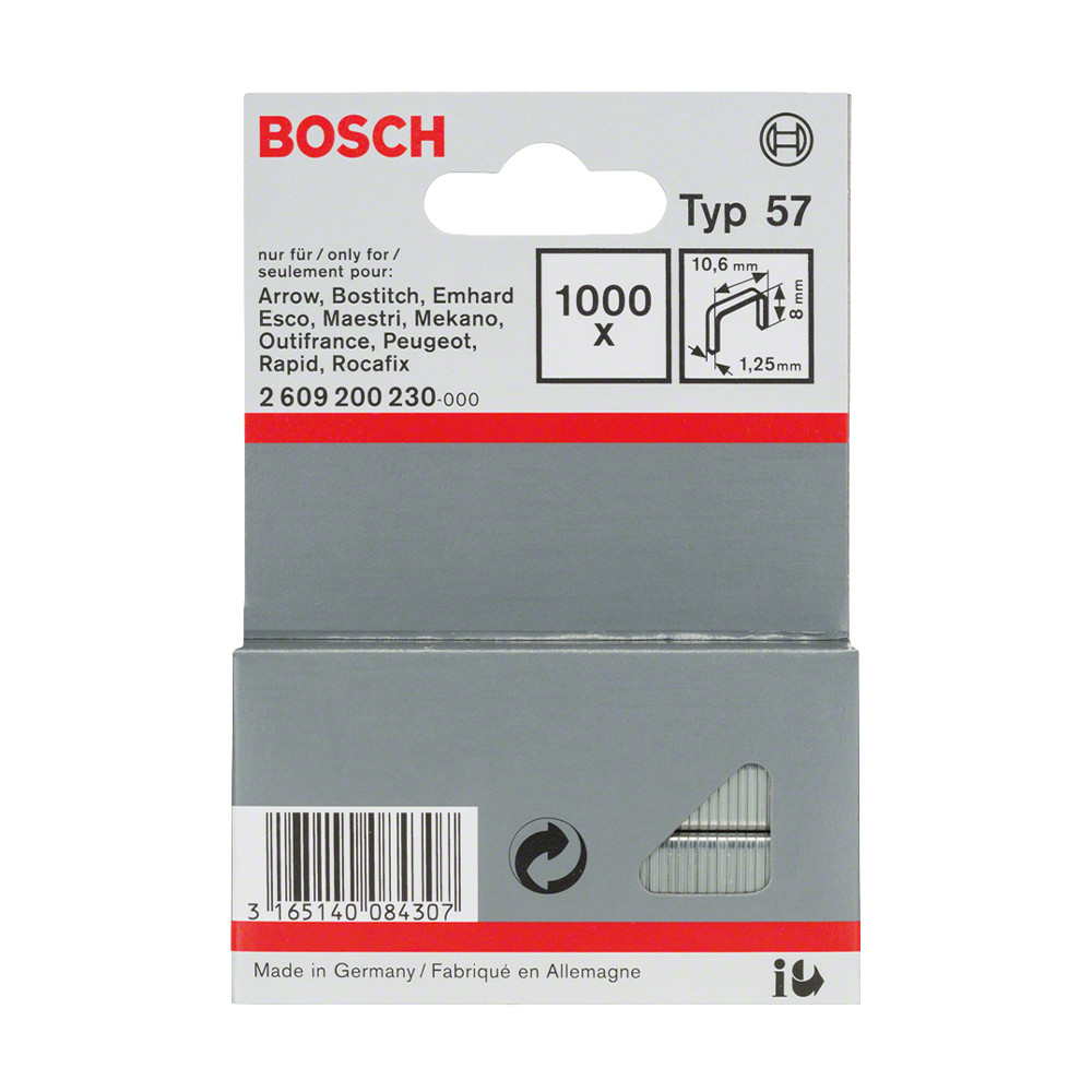 Bosch laposhuzal tűzőkapocs Type 57 8mm 1000db