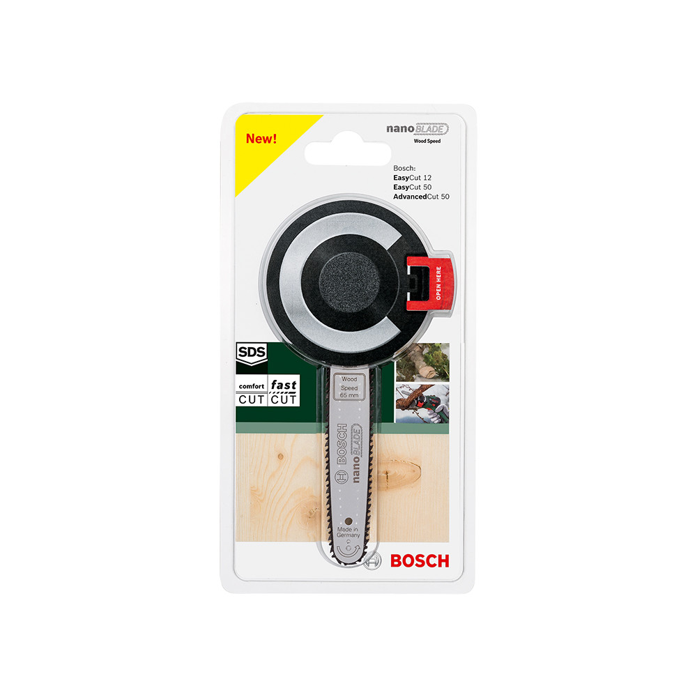 A nanoBLADE Wood Speed 65 faanyag gyors vágására alkalmas; a vágási mélység legfeljebb 65 mm