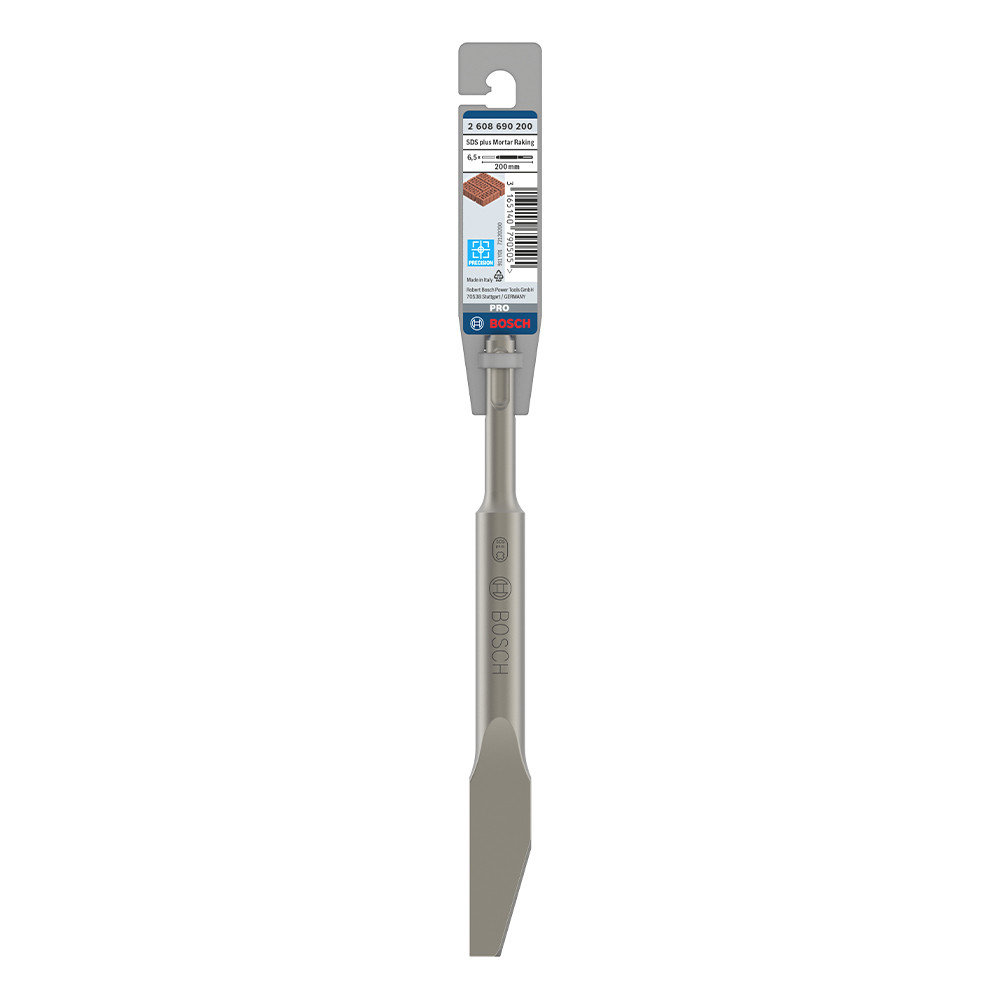 A PRO SDS plus Mortar Raking véső épületfelújítók számára készült, akiknek a téglák közötti habarcsot kell eltávolítaniuk precíz módon. A véső lapos pengével rendelkezik, hogy a felesleges anyagot hatékonyan kikaparhassa anélkül, hogy beleragadna a fugába. A csúcsa úgy lett kialakítva, hogy kiválóan törje a habarcsot, és jó irányítást biztosítson a vésőnek. Az alábbi anyag(ok)hoz ajánlott: habarcs