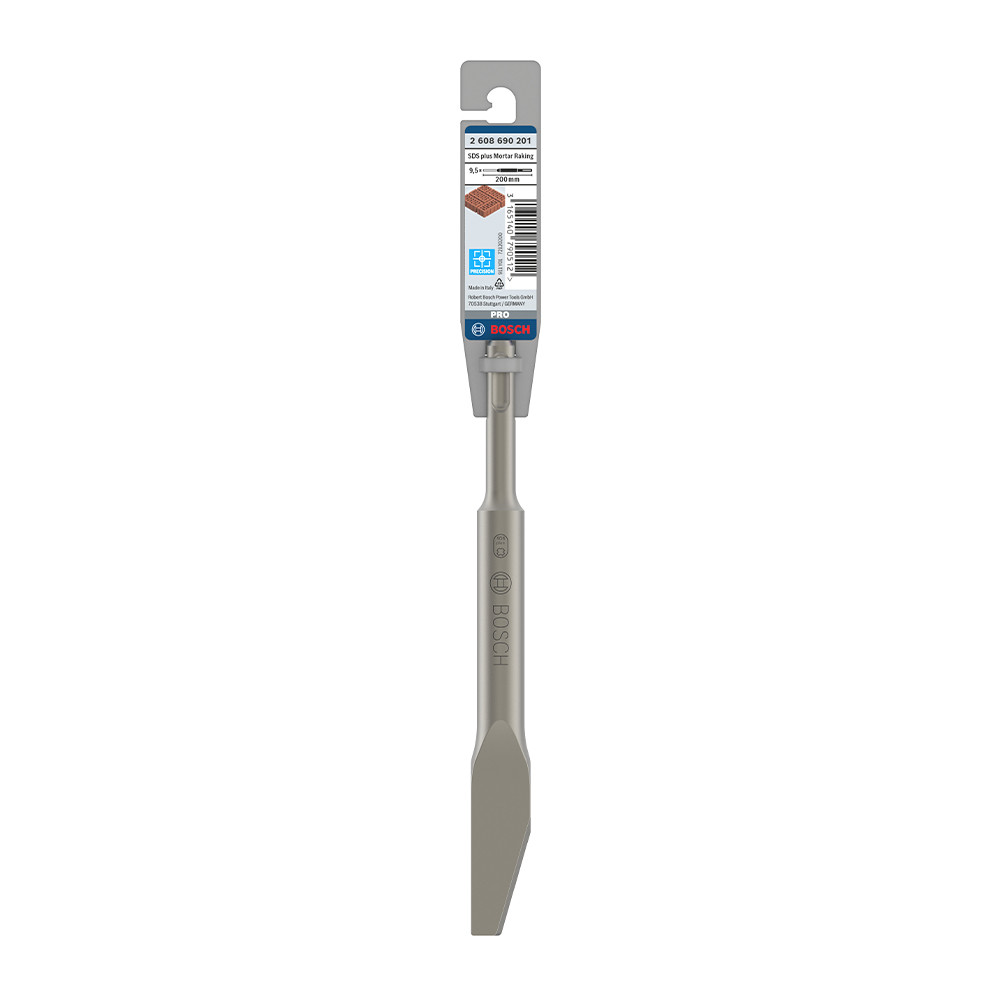 A PRO SDS plus Mortar Raking véső épületfelújítók számára készült, akiknek a téglák közötti habarcsot kell eltávolítaniuk precíz módon. A véső lapos pengével rendelkezik, hogy a felesleges anyagot hatékonyan kikaparhassa anélkül, hogy beleragadna a fugába. A csúcsa úgy lett kialakítva, hogy kiválóan törje a habarcsot, és jó irányítást biztosítson a vésőnek. Az alábbi anyag(ok)hoz ajánlott: habarcs