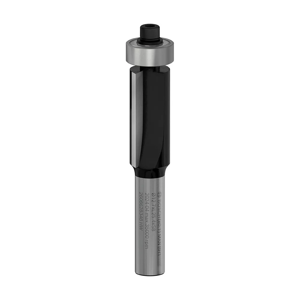 A golyóscsapágy biztosítja a könnyű iránytartást a munkadarabon, külső vezetősín nélkül is.