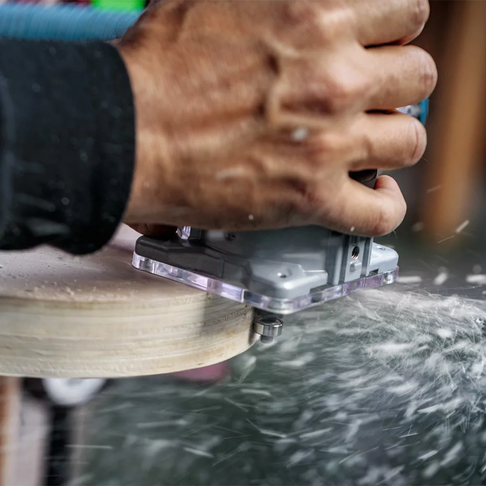 Kiálló anyagok, például rétegelt lemez vagy furnérlap szintbe marására, illetve tömör fához és fakompozitokhoz is.