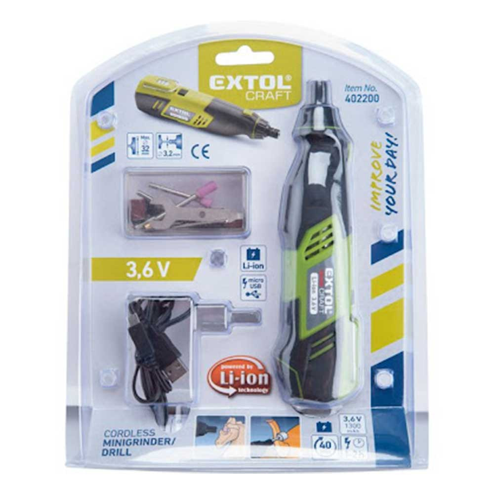Extol Craft akkus mini köszörű és fúrógép 3,6V 1,3Ah