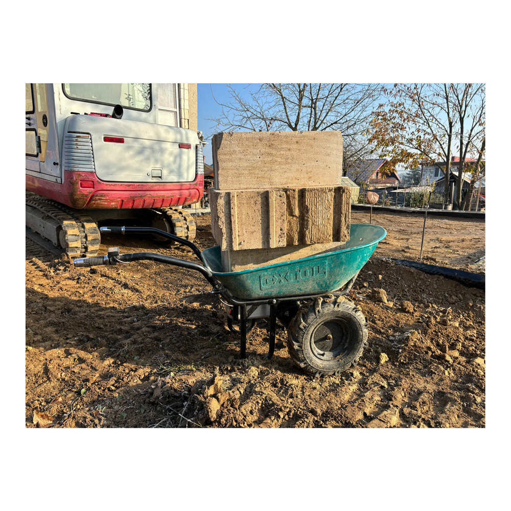 Az Extol® Industrial akkus kétkerekű talicskának a hajtásáról villanymotor, és differenciállal is rendelkező hajtómű gondoskodik