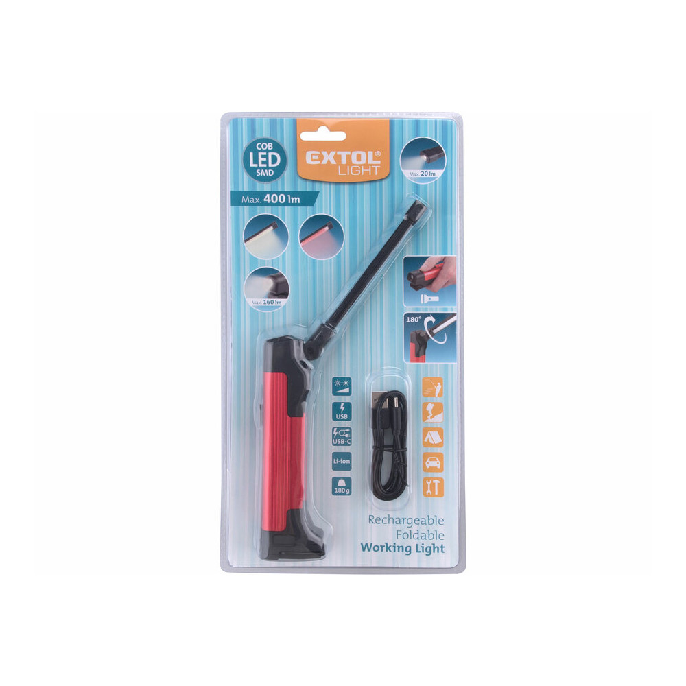 Extol Light LED munkalámpa, USB tölthető; 400 Lm, Li-ion akku