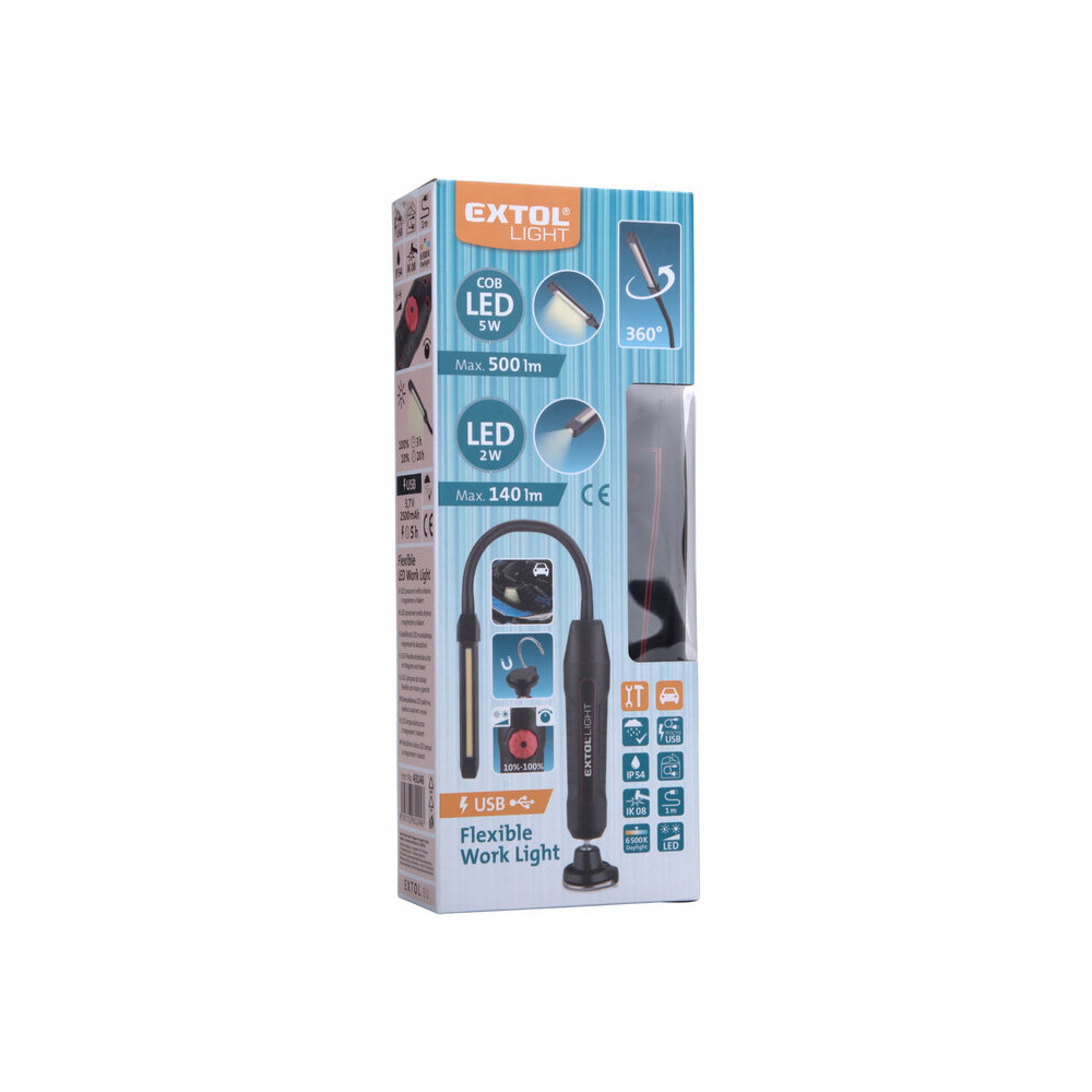 Extol Light LED munkalámpa, USB tölthető; 500 Lm, cserélhető Li-ion akku, 2500 mAh, flexibilis szár