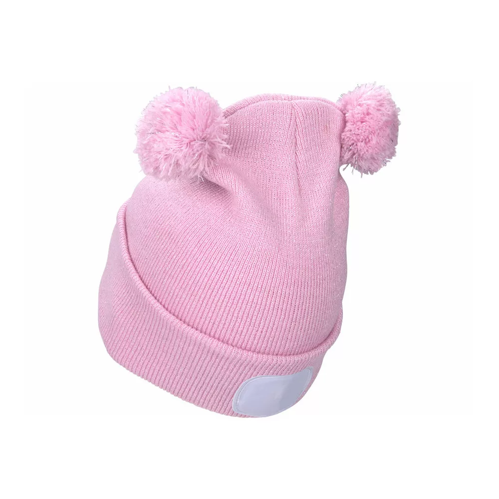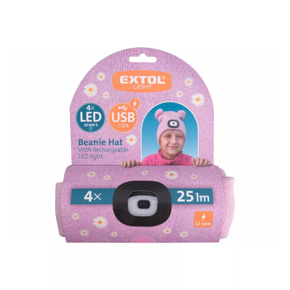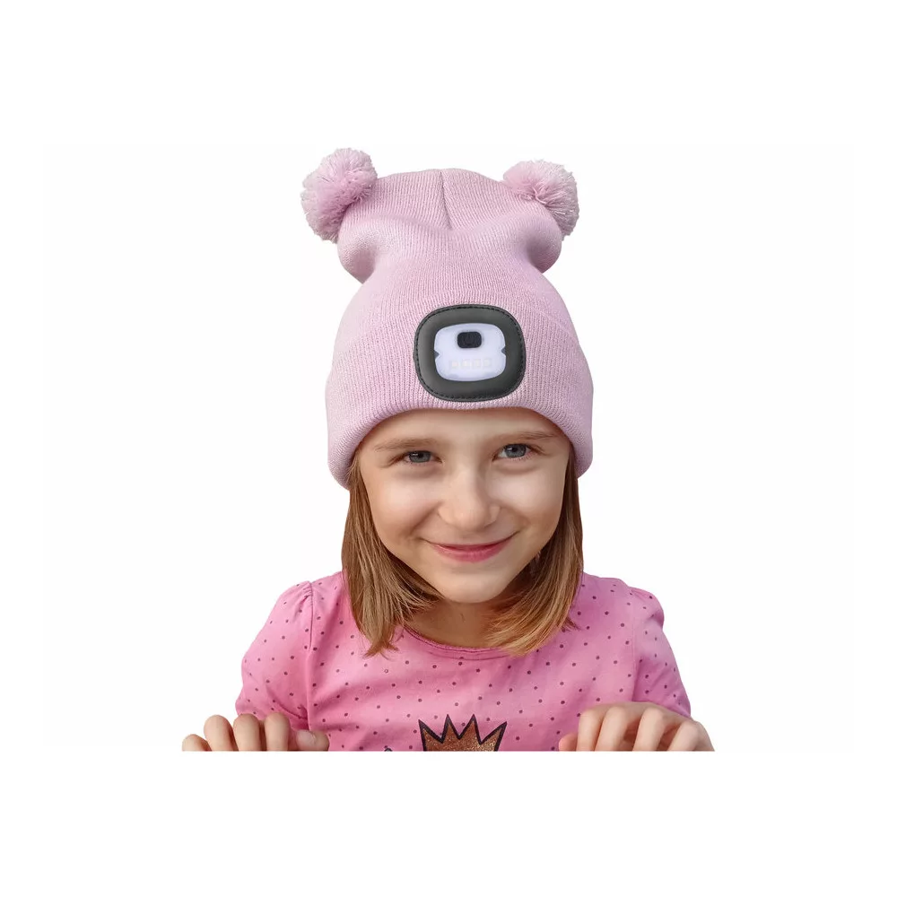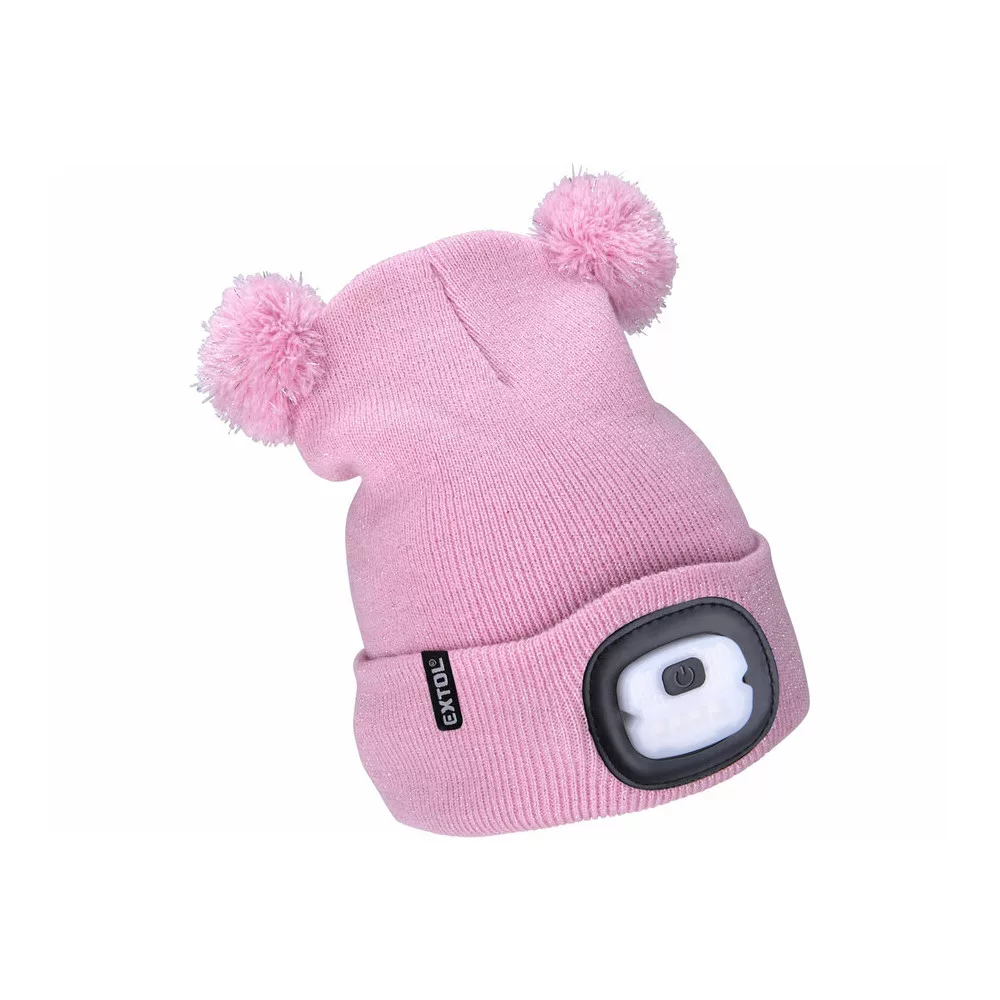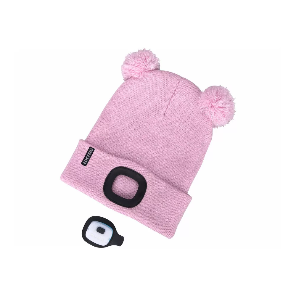 Extol Light sapka, gyerek, rózsaszín, kötött, kivehető LED homloklámpával, 4×25 Lumen; USB tölthető