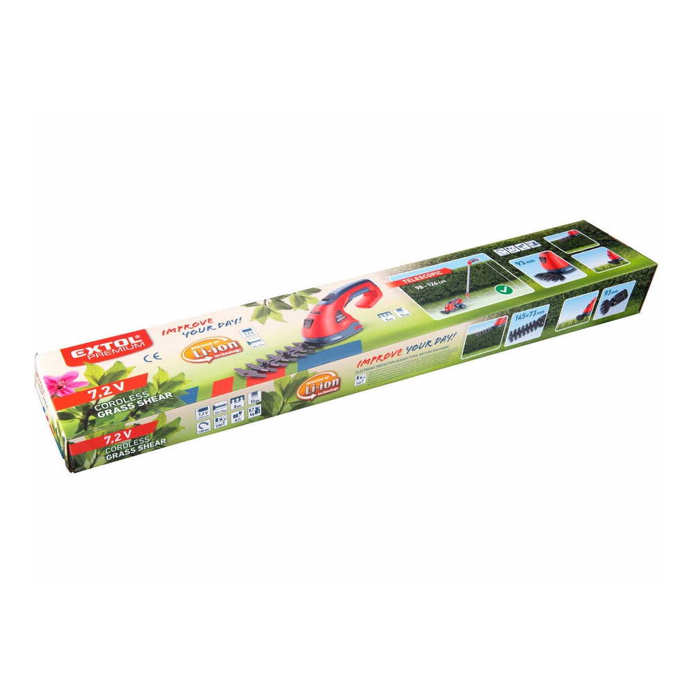 Extol Premium akkus fűnyíró olló, 7,2V, teleszkópos nyél, Li-ion akku, 1500mA