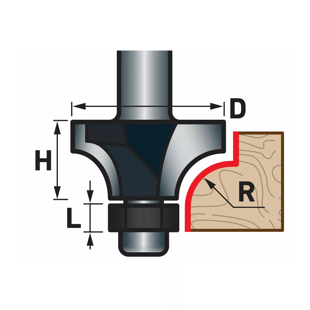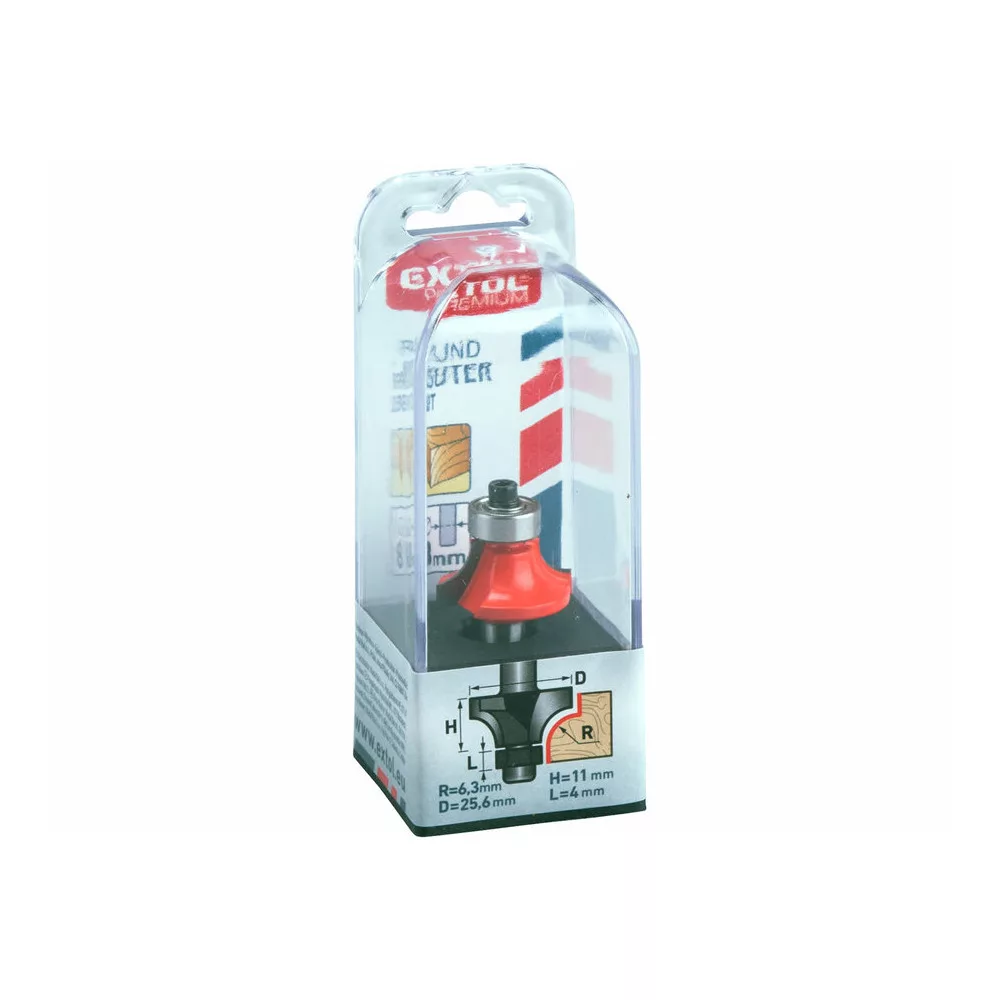 Extol Premium felsőmaró fára, lekerekítő (homorúfejű rádiuszmaró), csapágyas, R6,3×D25,6×H11, befogás: 8mm