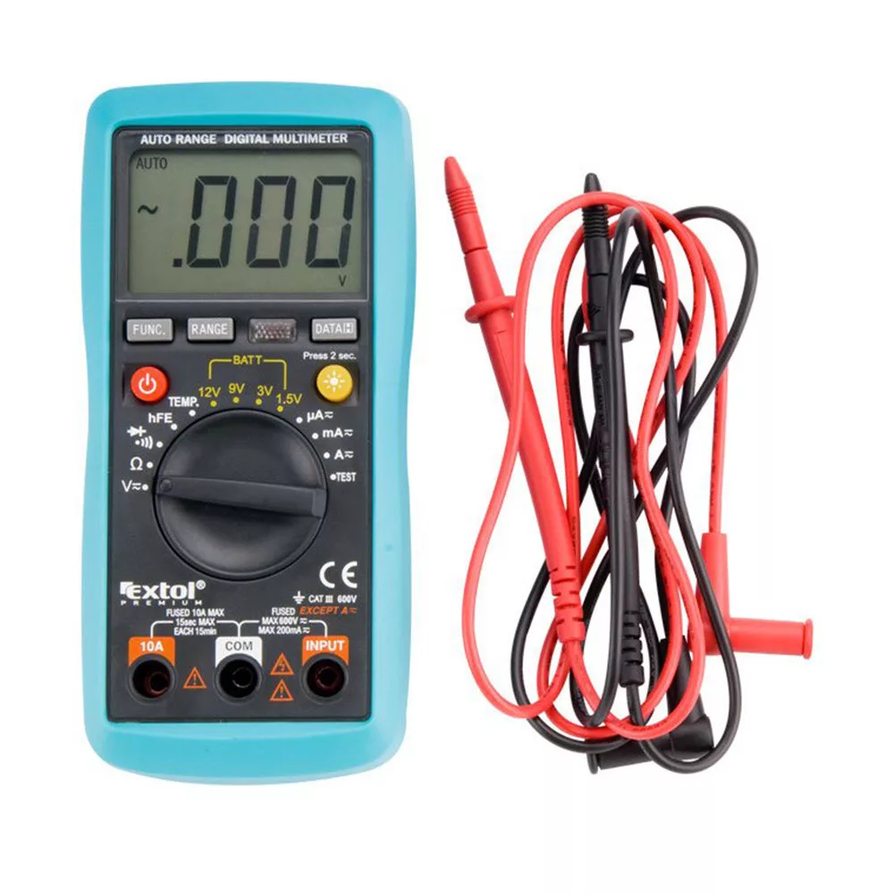 Az Extol Premium digitális multifunkciós mérőműszer egyenfeszültség és váltakozó feszültség