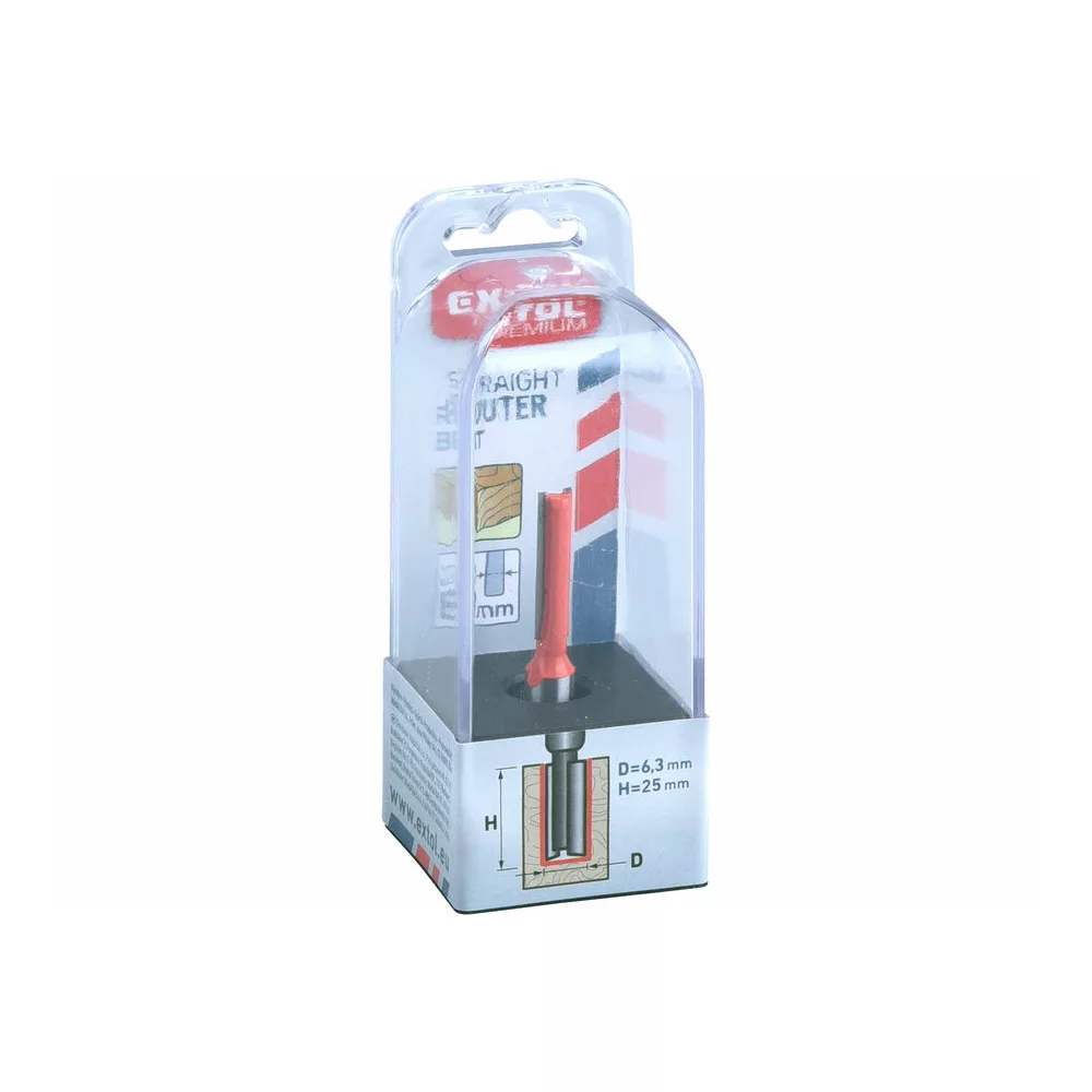 Extol Premium felsőmaró fára, egyenes (horonymaró), D6,3×H25, befogás: 8mm, keményfém lapkás