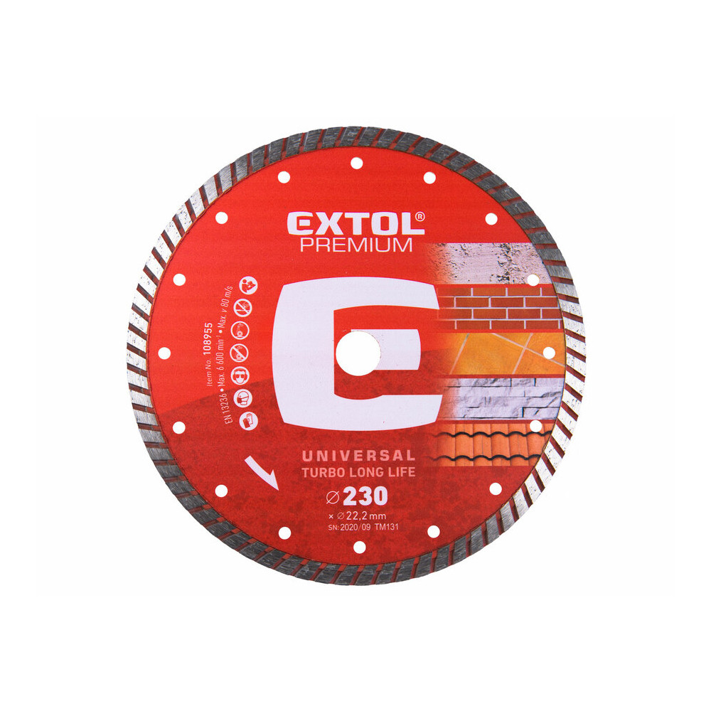 Extol Premium gyémántvágó TURBO Plus; 230mm, száraz és vizes vágáshoz, vágási mélység: 4,0 cm