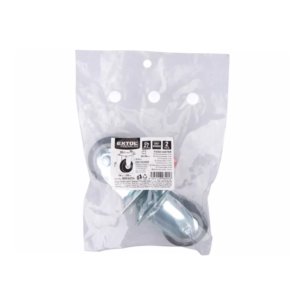 Extol Premium készülékgörgő 2 db, fix, szürke gumi, 50mm, max. teherbírás: 27 kg/db