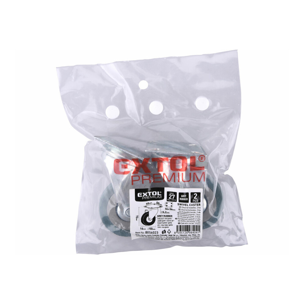 Extol Premium készülékgörgő 2 db, önbeálló, szürke gumi, 50mm, golyóscsapággyal, max. teherbírás:27kg/db