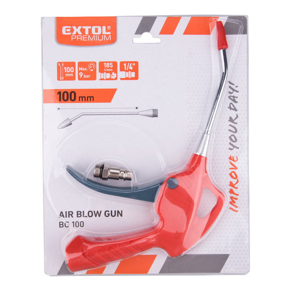 Extol Premium lefúvató pisztoly, 1/4" tömlőcsatlakozó, 10 cm hosszú merev csőr, max. 9 Bar