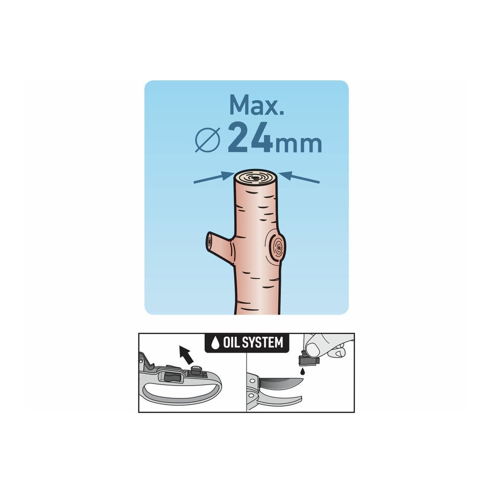 A racsnis szerkezet csökkenti a működtetéshez szükséges kézi erőt és növeli a max. átvágható ág átmérőt